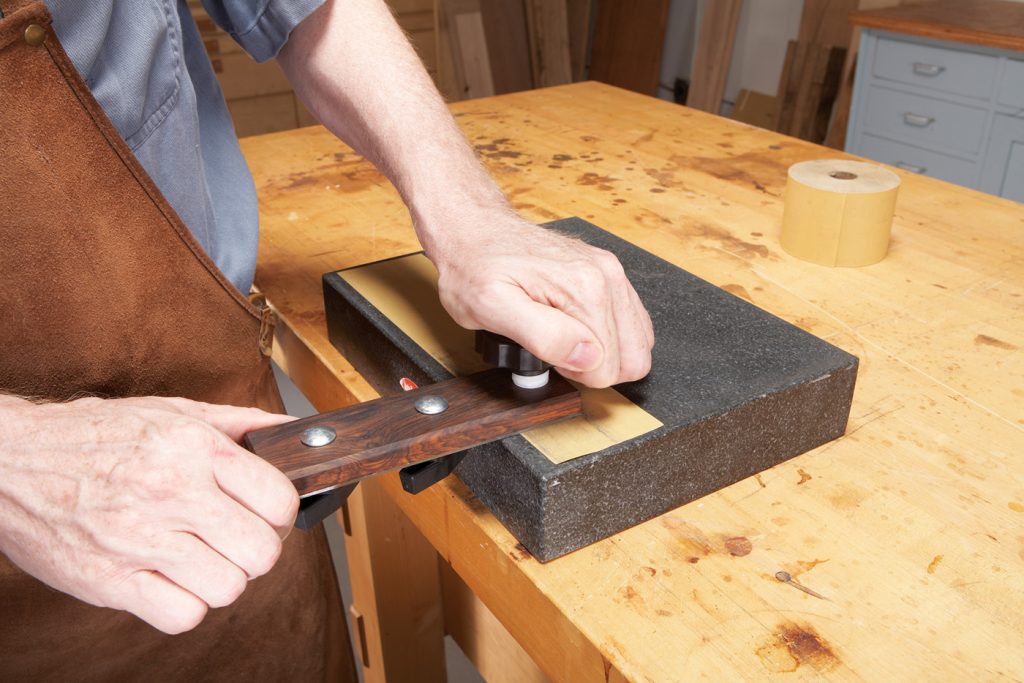 Lapping the back of the plane blade can be a lot of work. My fingers have often complained very loudly, so I’ve tried many ways to hold the blade more comfortably. I’ve used a magnet, made from a holder from …